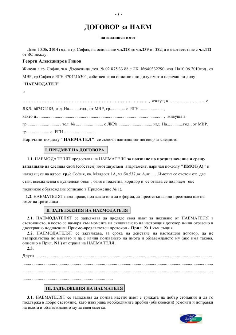 Dogovor Za Naem Zhoro Gikov
